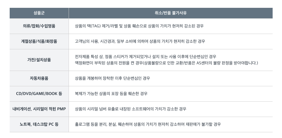 - 초기 불량이 아닌 경우, 제품에 사용 흔적이 없어야 합니다.
