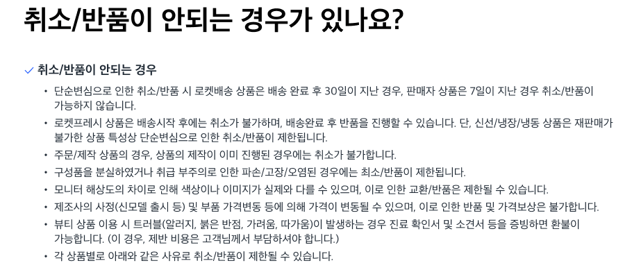 - 전문 셀러 제품: 별도의 반품 정책이 적용될 수 있음.
