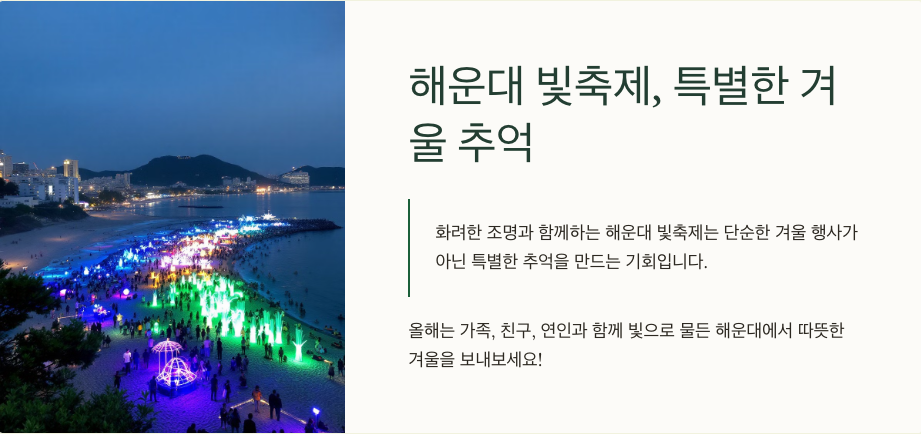 해운대 빛축제, 부산의 밤을 환히 밝히다 🌟