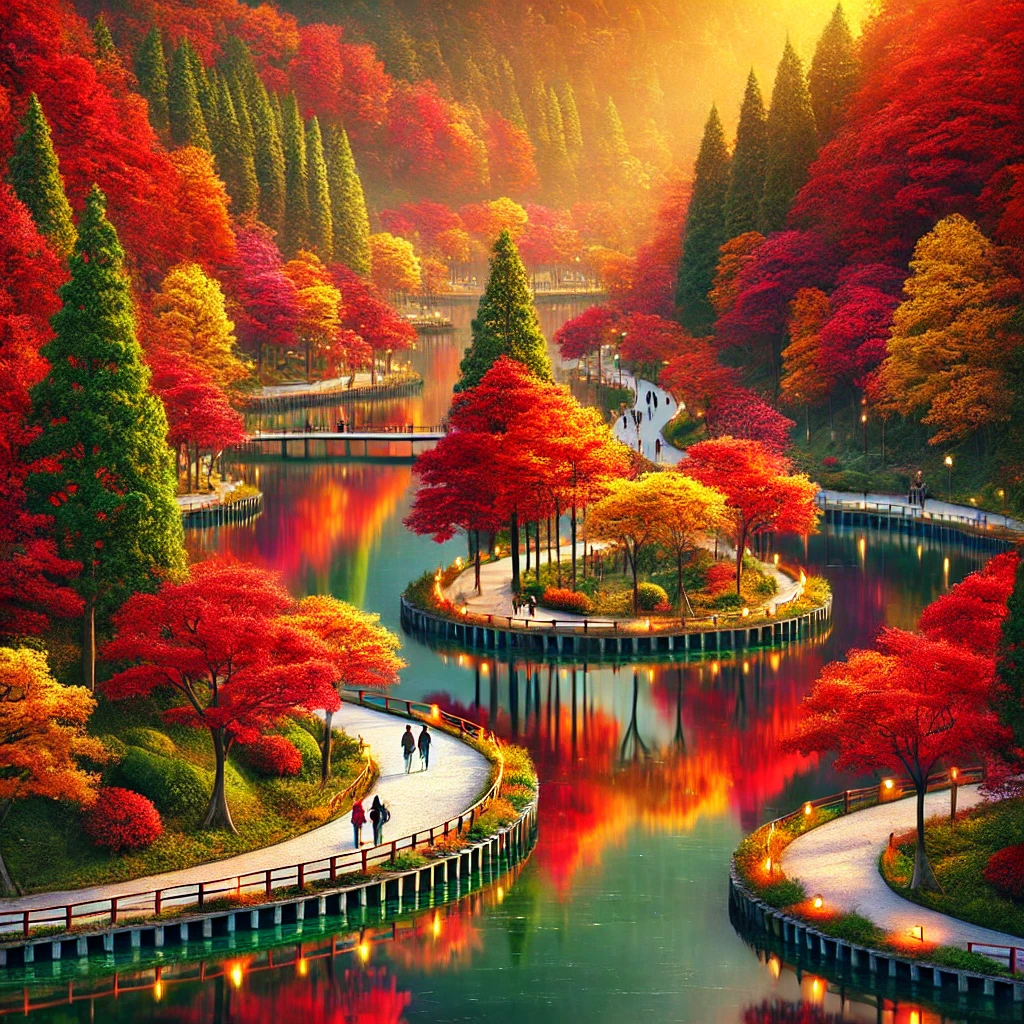 남이섬은 서울에서 멀지 않아 쉽게 접근할 수 있는 단풍 명소로, 가을이 되면 온 섬이 붉고 노란 단풍으로 물들어 그림 같은 풍경을 연출합니다. 드라마 촬영지로도 유명한 남이섬은 낭만적인 분위기를 자아내며, 가족, 연인, 친구들과 함께 가볍게 산책하거나 사진을 찍기 좋은 장소입니다. 특히 단풍이 떨어져 바닥을 덮으면 마치 붉은 융단을 깔아 놓은 듯한 느낌을 주어 더욱 로맨틱한 분위기를 자아냅니다.